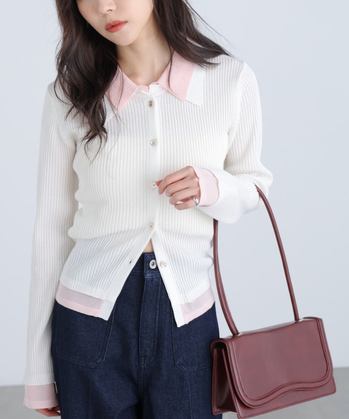 【トレンド配色ポロニット】トレンドの配色レイヤード見えするデザインです。