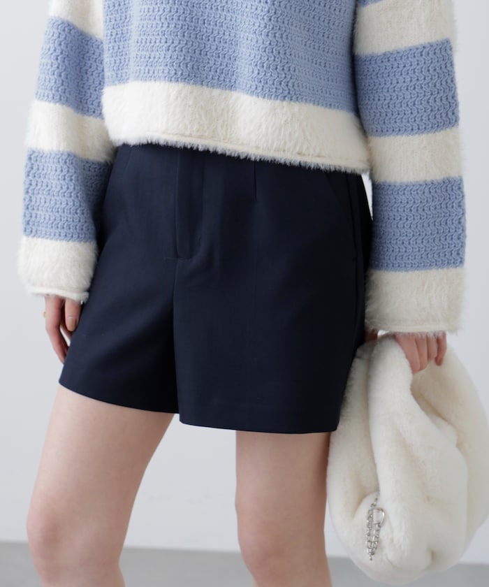 短めの股下丈が脚を長く見せ、すっきりと着られるデザイン。